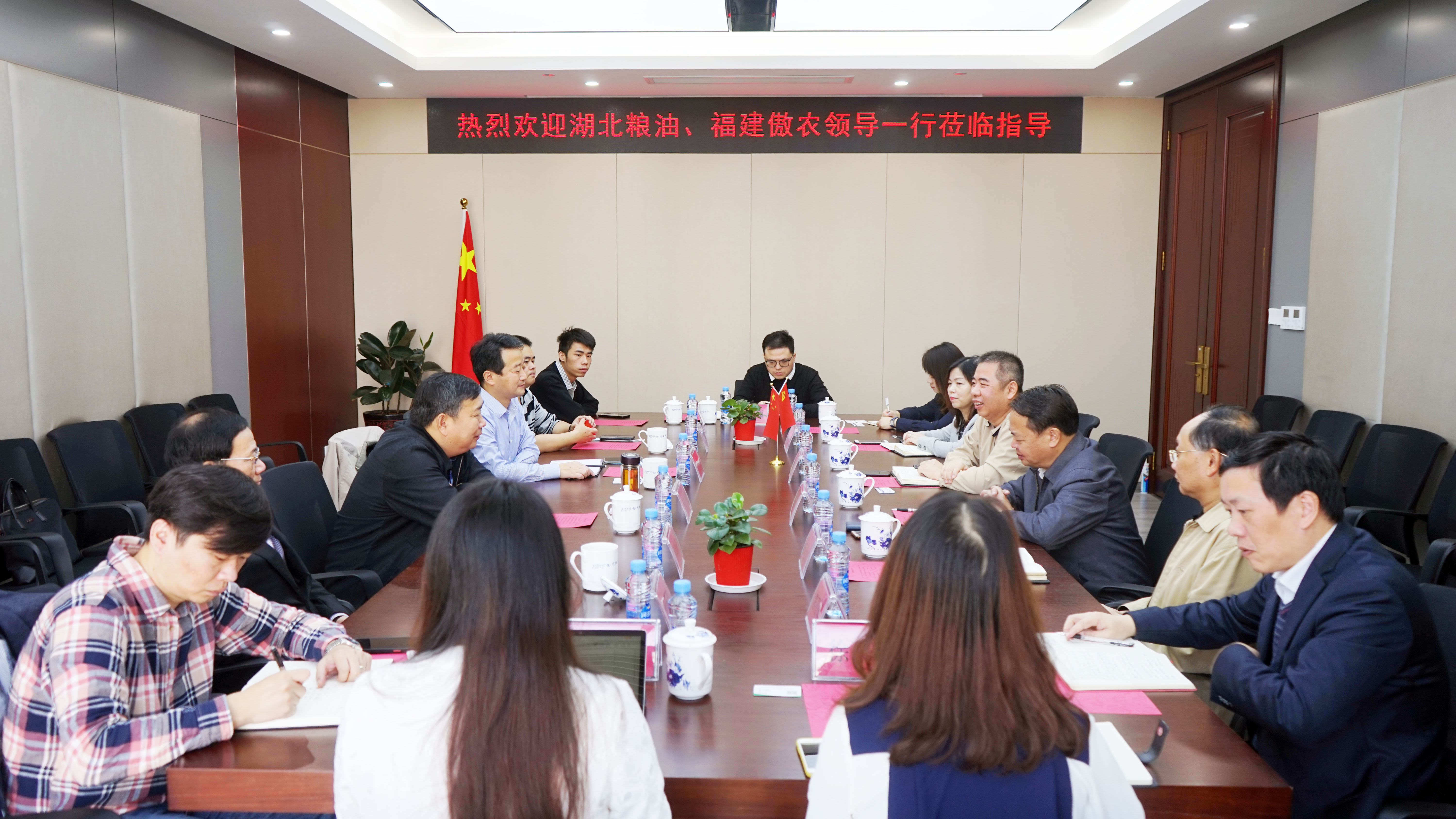 ? ? ? 11月3日上午,湖北省糧油(集團)有限責任公司黨委副書記、總經(jīng)理紀道斌與福建傲農(nóng)生物科技集團股份有限公司副董事長黃華棟等一行七人到江西省海濟融資租賃有限公司開展合作交流座談會。集團黨委副書記、總經(jīng)理柳習聰、海濟公司董事長黃偉、部分高管與業(yè)務(wù)三部相關(guān)人員參加座談會。
