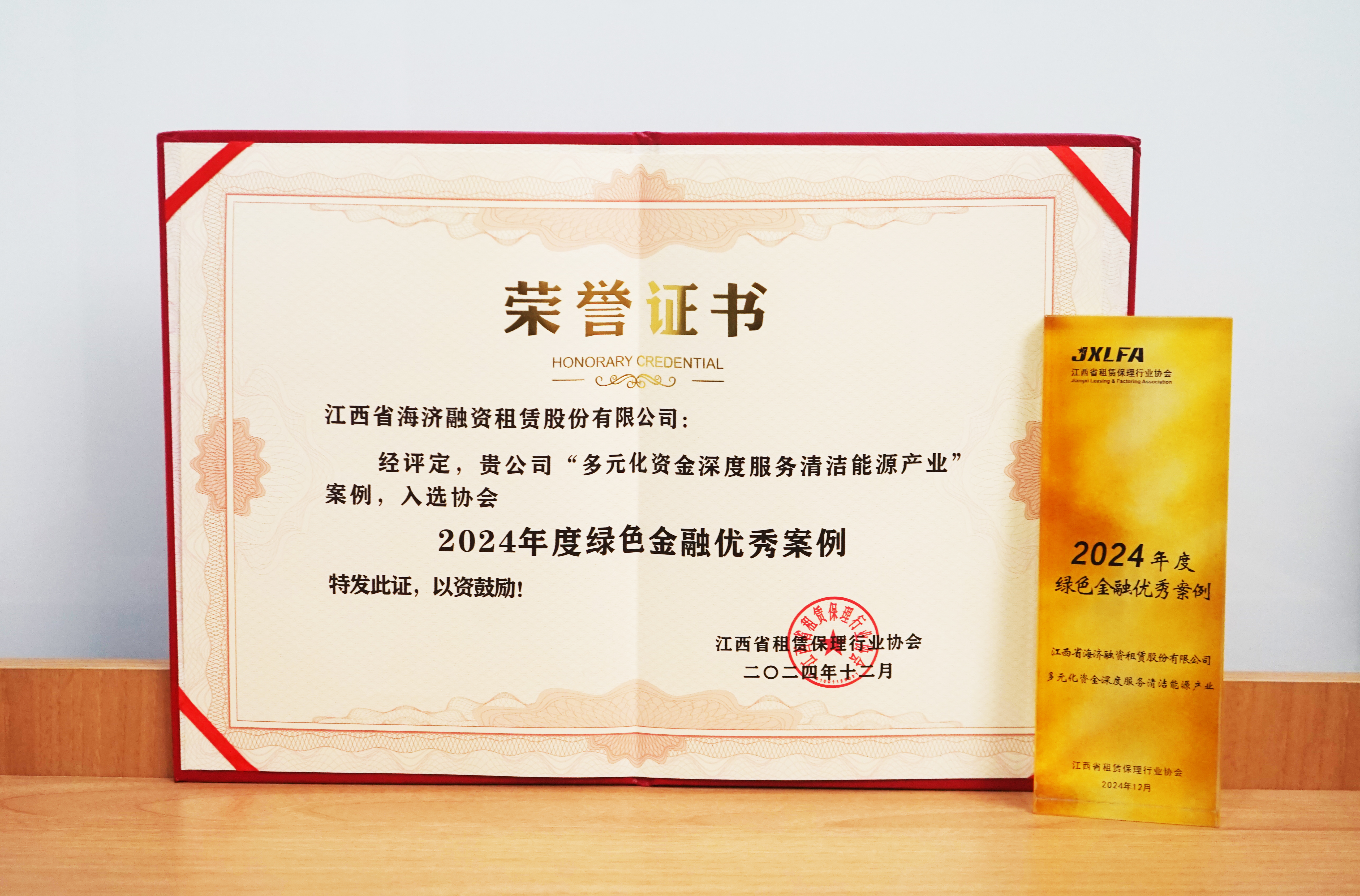 ? ? ? 12月24日,江西省租賃保理行業(yè)協(xié)會(huì)第一屆第五次會(huì)員大會(huì)在江西南昌召開,海濟(jì)公司多元化資金深度服務(wù)清潔能源產(chǎn)業(yè)案例榮獲“綠色金融優(yōu)秀案例”獎(jiǎng)項(xiàng),標(biāo)志著公司在綠色金融領(lǐng)域的實(shí)踐探索得到了行業(yè)高度認(rèn)可。