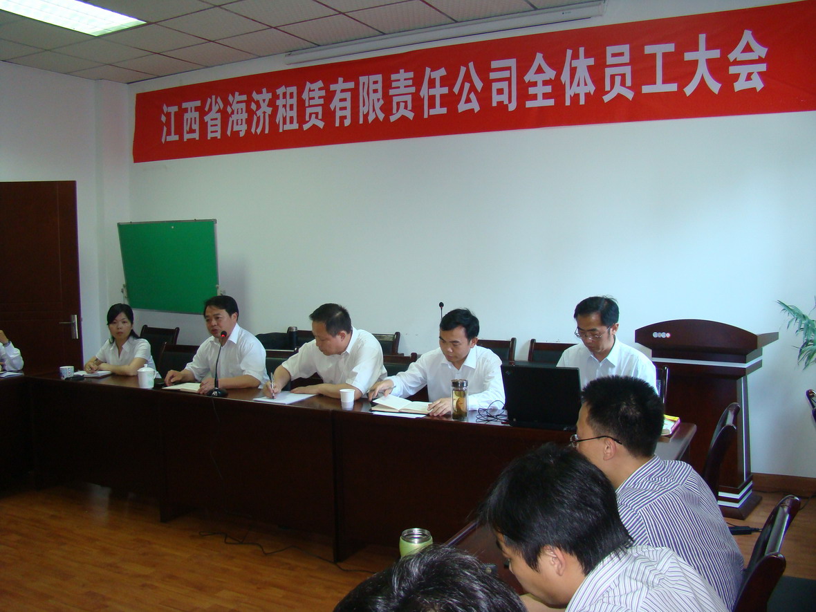???? 二○一二年五月七日,海濟租賃公司召開經(jīng)濟形勢分析暨業(yè)務(wù)發(fā)展研討會,會議由柳習(xí)聰總經(jīng)理主持,集團公司黨委書記、董事長兼公司董事長孫東及全體員工參加了會議。