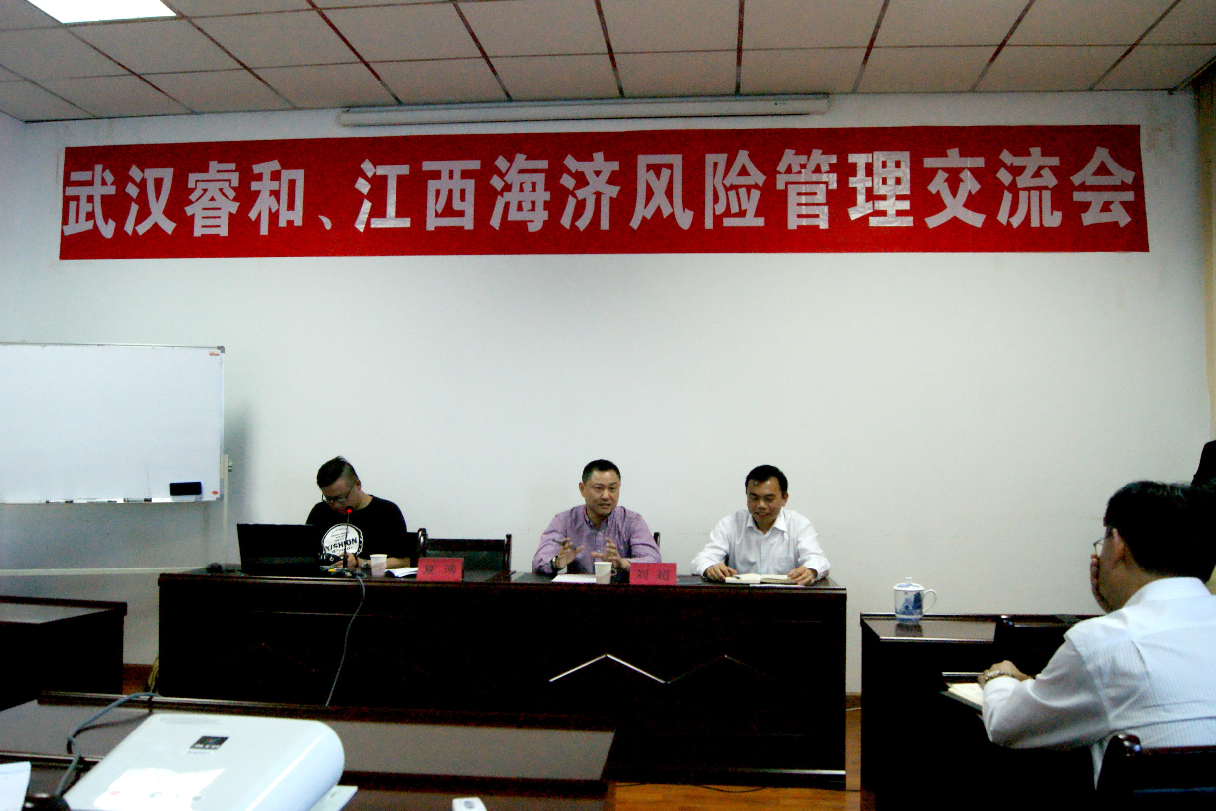 ??? 2014年4月10日,海濟(jì)租賃公司邀請(qǐng)武漢睿和擔(dān)保公司舉辦“武漢睿和與江西海濟(jì)風(fēng)險(xiǎn)管理交流會(huì)”, 睿和擔(dān)??偨?jīng)理劉超、風(fēng)控總監(jiān)夏湧應(yīng)邀到會(huì),海濟(jì)租賃公司總經(jīng)理柳習(xí)聰及全體員工共同參與此次交流會(huì)。