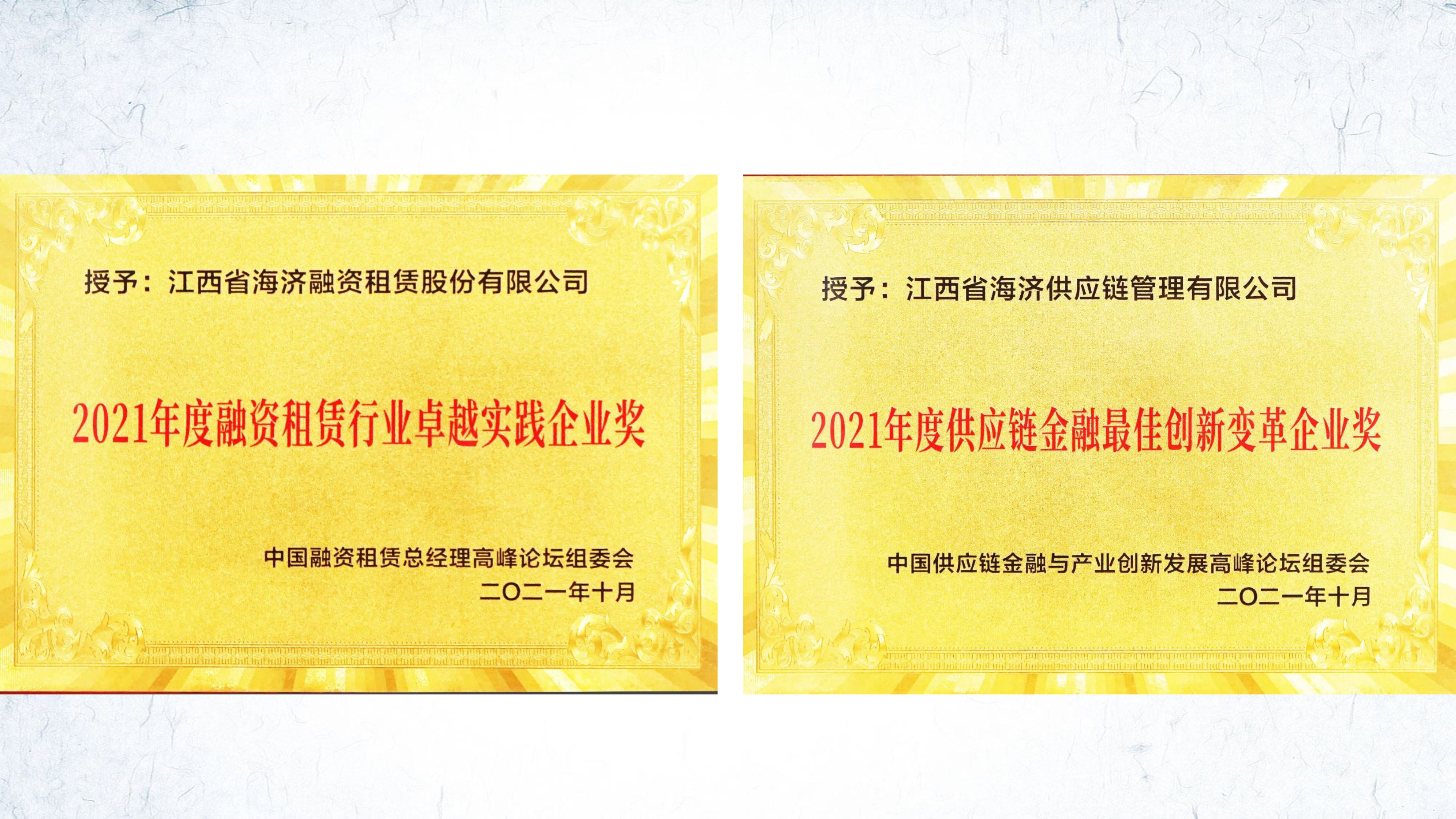 海濟租賃榮獲2021年中國融資租賃總經(jīng)理高峰論壇金鼎獎3項大獎