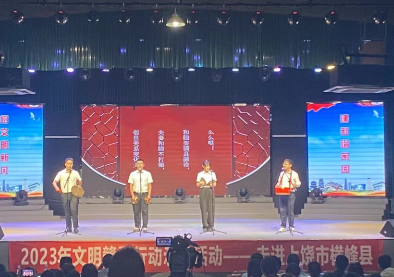 ????? 活動(dòng)現(xiàn)場(chǎng),各參與單位以“文明新風(fēng)、移風(fēng)易俗”為主題開展文藝匯演,通過歌曲演唱、情景劇宣講、旗袍秀、詩(shī)歌朗誦、舞蹈、樂器演奏等形式,展現(xiàn)了豐富多彩的文化生活和積極向上的精神面貌,現(xiàn)場(chǎng)氣氛十分熱烈。同時(shí),在表演過程中還穿插了互動(dòng)環(huán)節(jié)和頒獎(jiǎng)環(huán)節(jié),在普及文明新風(fēng)的同時(shí),為觀眾送上了精美的獎(jiǎng)品,并為兩位道德模范頒發(fā)了愛心資金。