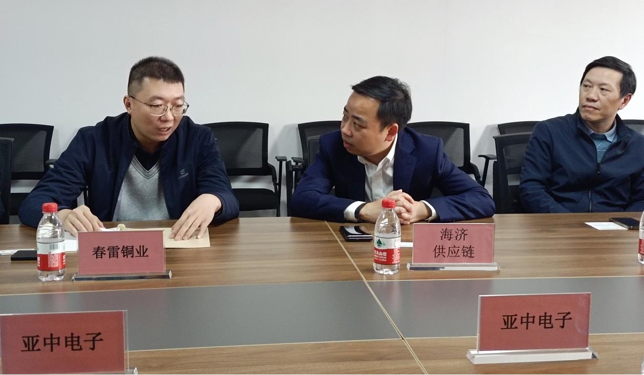 近日,在亞中電子新廠,海濟(jì)供應(yīng)鏈公司與江西亞中電子科技股份有限公司、太原晉西春雷銅業(yè)有限公司召開(kāi)合作洽談會(huì),敲定了合作細(xì)節(jié),標(biāo)志著三方探討許久的高精密銅帶供銷(xiāo)合作事項(xiàng)圓滿(mǎn)落地。