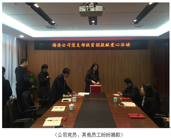 ?? ? ?海濟(jì)公司黨支部將學(xué)習(xí)宣傳貫徹黨的十九大精神落實(shí)到具體行動(dòng)上,結(jié)合“兩學(xué)一做”活動(dòng)內(nèi)容,組織公司全體黨員為集團(tuán)公司扶貧點(diǎn)捐款,為扶貧攻堅(jiān)貢獻(xiàn)力量。