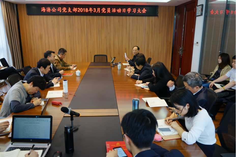 ????? 2018年3月29日下午,海濟(jì)公司黨支部組織開(kāi)展了“不忘初心、牢記使命”主題黨員活動(dòng)日活動(dòng)。活動(dòng)日內(nèi)容包括學(xué)習(xí)全國(guó)兩會(huì)精神、黨支部書(shū)記上專(zhuān)題黨課、黨小組重點(diǎn)討論民主評(píng)議黨員整改措施和落實(shí)黨建工作與經(jīng)營(yíng)活動(dòng)深度融合事項(xiàng)等,集團(tuán)公司黨委副書(shū)記、總經(jīng)理、海濟(jì)公司董事長(zhǎng)、租賃公司黨支部掛點(diǎn)領(lǐng)導(dǎo)柳習(xí)聰同志到會(huì)并參與了小組討論。